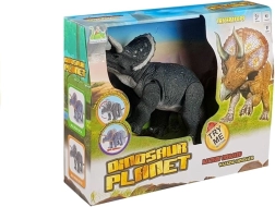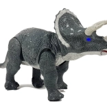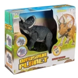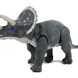 Ismerkedjen meg a nagy Triceratops dinó tökéletes replikájával, amely 125–100 millió évvel ezelőtt élt. Ez a modell markáns koponyával és masszív izmos felépítéssel készült. Három "AA" 1,5 V-os elemmel működik, bekapcsolás után a dinó járni, üvölteni és a fejét mozgatni kezd, ami valósághű élményt nyújt fényhatásokkal, mint például a szemek villogása.