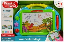 Szórakoztató és fejlesztő mágneses tábla gyerekeknek nagy rajzfelülettel, stylussal és 3 bélyegzővel. Készíts többszínű rajzokat, mindent könnyen letörölhetsz, és fejleszd a kreativitást és a finommotorikát. A fogantyúnak köszönhetően a tábla könnyen hordozható, lányoknak és fiúknak egyaránt megfelelő.