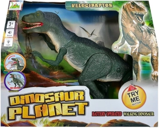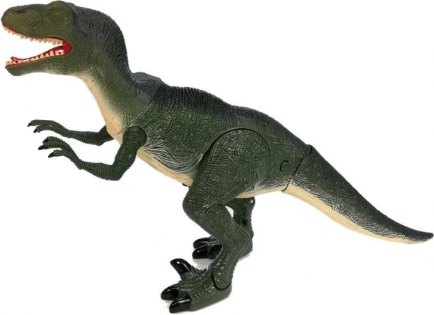 Bekapcsolás után a velociraptor lépéseket tesz, amelyeket erőteljes üvöltés kísér. Remek hatás a valósághű játékhoz otthon vagy kiállításon.