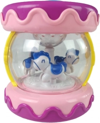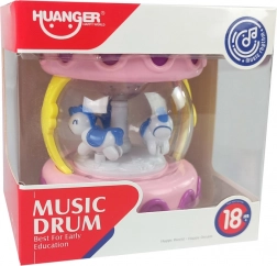 A dob varázsa a belső, lovacskákkal díszített körhinta, amely leköti és fenntartja a figyelmet, miközben a gyerekek fejlesztik a koordinációt ezzel a kreativitást támogató játékkal. A dobon való játék segíti az apró ujjak fejlődését, ezáltal hozzájárul a későbbi készségek, például az írás és a logikus gondolkodás elsajátításához.