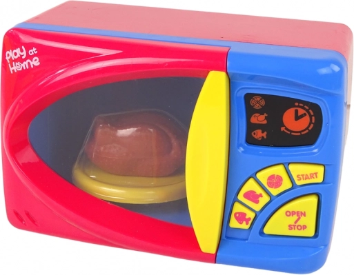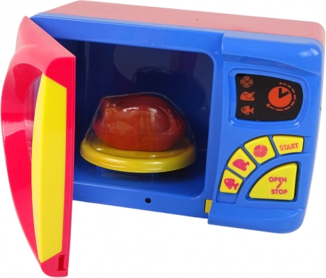 Gyermek mikrohullámú sütőnk kiváló választás a kis szakácsok számára, akik szeretnek megtanulni a konyhai eszközökről. Ez a színes mikrohullámú sütő valósághű gombokkal és tartozékokkal rendelkezik, amely támogatja a fantáziadús játékot. Gyermeke a hal, csirke és pizza motívumú gombok segítségével választhat melegítési időt, és a START gombra kattintva elindíthatja a programot. Az OPEN/STOP gomb megállítja a melegítést és kinyitja az ajtót.
