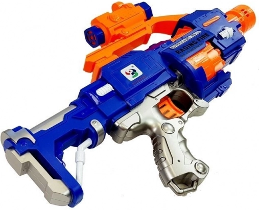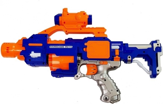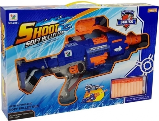 A blaster minőségi, tanúsított, éles szélektől mentes műanyagból készült. Az elektromos meghajtás (3× AA, nem tartozék) folyamatos lövést biztosít a tár betöltése és az ON módra kapcsolás után. A termék megfelel a CE és EN 71 szabványoknak, így biztonságos és tartós használatra számíthat.