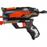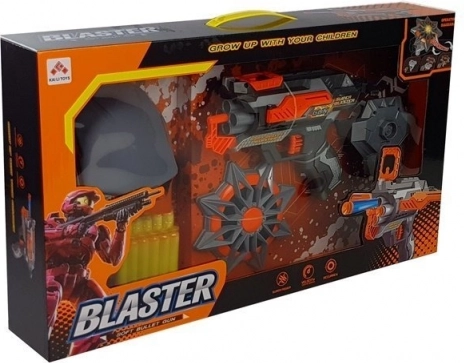 Ez a stílusos, fekete–narancs színkombinációjú habblaster órákon át tartó aktív szórakozást nyújt a gyerekeknek. A puha hablőszernek és az éles szélektől mentes, masszív műanyag testnek köszönhetően a játék biztonságos, és beltéren valamint kültéren egyaránt használható. A hangulatot tovább fokozza a szerepjátékhoz mellékelt maszk.