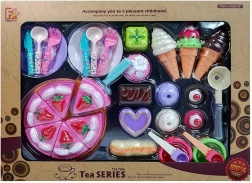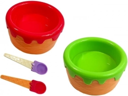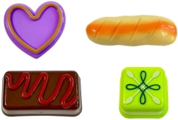A gyerekek élvezhetik a játékot más édességekkel is, mint például különféle fagylaltokkal. A készlet tartalmaz asztali kiegészítőket és apró eszközöket élénk színekben, hogy tökéletes lakoma játékot egészítsenek ki.