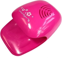 A készlet tartalmaz egy rózsaszínű UV lámpát a gyors és könnyű körömlakk szárításhoz.