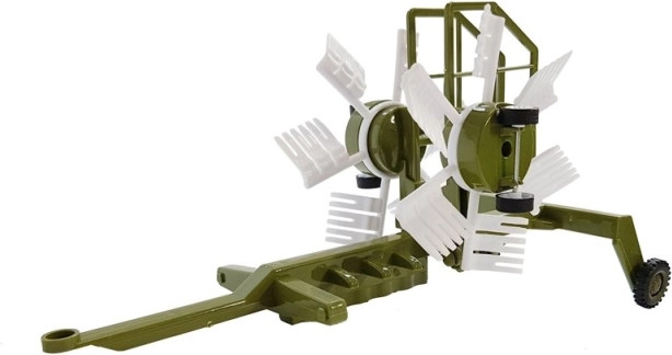 Zöld–fehér rendképző forgó ujjas elemekkel, amely megtanítja a gyerekeket a fű vagy széna összegyűjtésének elvére, és bővíti a játék lehetőségeit.