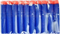 10 darab puha hablövedék gyerekeknek készült pisztolyokhoz, amely garantálja a kiváló szórakozást. A lövedékek gumival vannak lezárva és sötétkék színűek narancssárga végekkel.