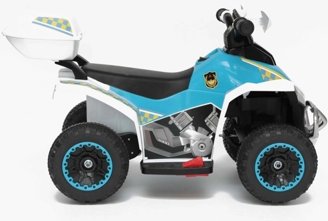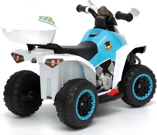 Ez a gyermek négykerekű nagyszerű választás azoknak a kis kalandoroknak, akik szeretnék igazán rendőrnek érezni magukat. A sportautók által inspirált erős kialakítás és a minőségi anyagok kiváló tartósságot és kényelmet biztosítanak vezetés közben. Műanyag kerekek gumiszíjjal és automata fék hozzájárulnak a nagyobb kényelemhez és biztonsághoz.