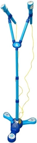 Ez a multifunkciós, kék karaoke szett remek ajándék azoknak a gyerekeknek, akik imádnak énekelni és szerepelni. Az állítható állványnak és a két különálló mikrofonnak köszönhetően énekelhetnek szólóban vagy duettben a barátokkal. A fényhatások és a 12 előre beállított dallam bármelyik szobát kis színpaddá varázsolja.