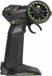 Az ergonomikus adó 2,4 GHz-es frekvencián zavarásmentes, egyenletes vezérlést biztosít, és lehetővé teszi több autó egyidejű versenyét 30–50 méteres hatótávon belül.