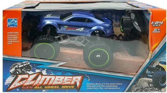 Erős RC terepjáró autó összkerékhajtással (4WD), puha gumibroncsokkal és hatékony lengéscsillapítókkal, amely megbirkózik az aszfalttal és az egyenetlen tereppel is. A 2,4 GHz-es frekvenciának köszönhetően zavarás nélkül versenyezhet, a maximális sebesség 6,5 km/óra. A 1:24 méretarány élethű megjelenést és remek menettulajdonságokat kínál 6 éves kortól.