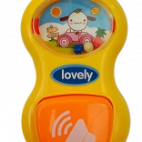 A csomag része egy levehető gyerektelefon és három bedobható forma (kör, négyzet, háromszög), amelyek fejlesztik a logikát és a szem–kéz koordinációt.