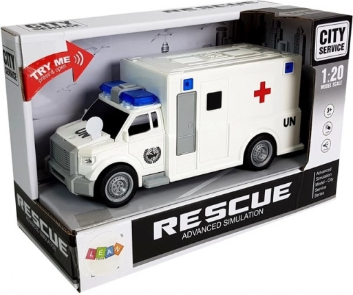 Valósághű gyerek mentőautó 1:20 méretarányban fény- és hangeffektekkel, valamint súrlódásos meghajtással, amely minden kis mentőst megörvendeztet. Gumírozott kerekekkel rendelkezik, könnyű és strapabíró, és a kompakt méreteknek köszönhetően könnyen kezelhető. A csomag része a elem, és nem hiányzik a CE tanúsítvány a EN 71 szabványnak megfelelően.