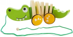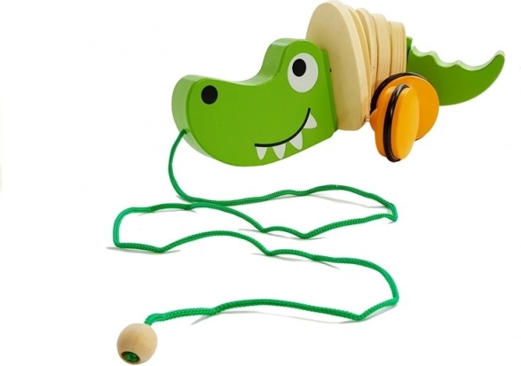 A fa krokodilos húzható játék elkíséri a gyerekeket bármerre is mennek. Elég, ha a gyerek a madzagot fogja, és a krokodil követni fogja. Ez a játék nemcsak az első lépések megtételében segít, hanem a motorikus és kognitív képességek fejlesztését is támogatja.
