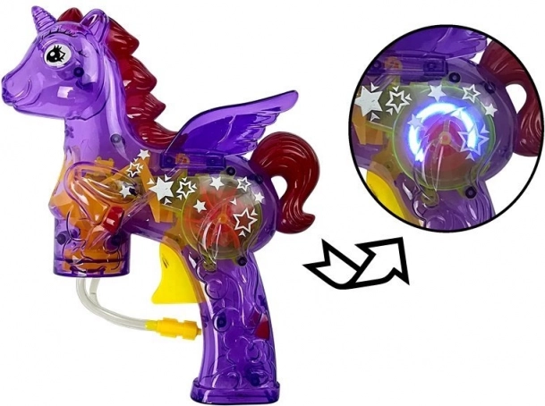 Az egyszarvú formájú buborékpisztoly mágnesként vonzza a gyerekek figyelmét. Tartalmaz két tartalékot, amelyek garantálják a hosszú órákon át tartó szórakozást. A pisztoly dizájnjának és az egyszarvú motívumnak a kombinációja eredeti kísérőt nyújt a mindennapi szórakozáshoz.