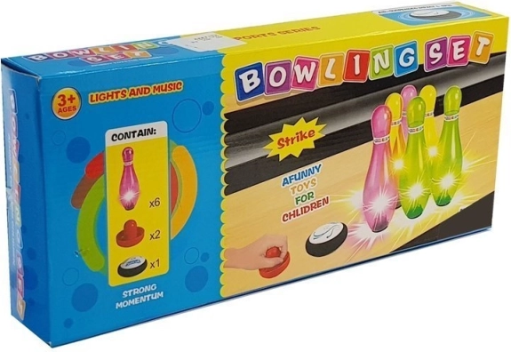 Színes bowling készlet hat bábuval és fényhatásokkal ideális szórakozás gyerekeknek és felnőtteknek egyaránt. Segít fejleszteni a pontosságot és a koordinációt.
