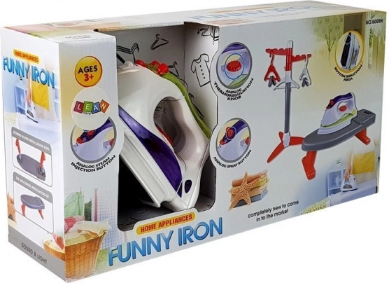 A gyermek vasaló készlet elemmel tökéletes azoknak a gyerekeknek, akik szeretnek felnőtteket utánozni a házimunkák közben. Valósághű részletek, mint a hőmérséklet gomb és a "vasalás" közbeni hangok hitelessé teszik a játékot. A készlet tartalmaz: