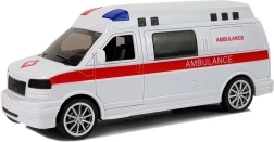 Fehér kivitel piros elemekkel és feltűnő AMBULANCE felirattal, részletes kerekekkel és ablakokkal – pont, mint egy igazi mentőautó, amely mentős szerepjátékra inspirál.