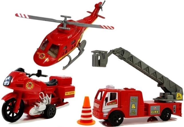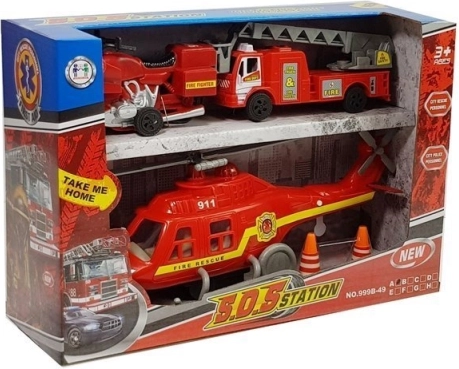 - 3 jármű egy csomagban – helikopter, tűzoltóautó, motor