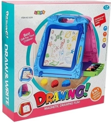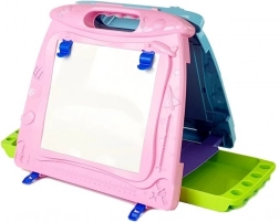 Ez a sokoldalú gyermek rajztábla két felületet kínál a végtelen rajzoláshoz és íráshoz: az egyik oldal a törölhető filcekhez, a másik a mágneses rajzoláshoz stylusszal ideális. A gyerekek bármikor visszatérhetnek az alkotásokhoz, vagy egy mozdulattal gyorsan letörölhetik a csúszkával. A könnyű kialakítás praktikus fogantyúval és két oldalsó fiókkal gondoskodik róla, hogy minden kéznél legyen.