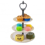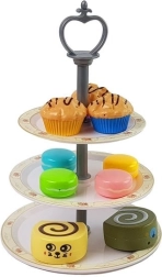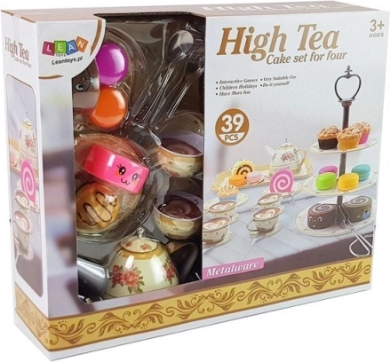 Ez a gyönyörű, fehér-krémszínű, rózsaszín motívumos teaszett ideális azoknak a gyerekeknek, akik szeretnek felnőtt szerepekbe beleélni. A teaszett fejleszti a fantáziát, az önálló gondolkodást és az ügyességet játék közben, így nemcsak szórakozást, hanem oktatási értéket is nyújt. A csomag összesen 39 elemet tartalmaz – csészéket, tányérokat, desszertes tányérokat, fedeles kancsót, tálcát, emeletes tortaállványt, különféle édességeket, mint kuglófok, sütemények, makaronok, valamint kanalakat, tortalapátot és villákat.