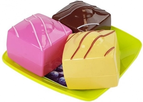 Ez a vidám és színes készlet lehetővé teszi a gyerekek számára a finom desszertek elkészítésének és felszolgálásának utánzását, fejlesztve fantáziájukat és motorikus képességeiket. Az élénk színek és az egyes elemek élethű kialakítása minden gyermeket lenyűgöz a „házi cukrászda” játék során.