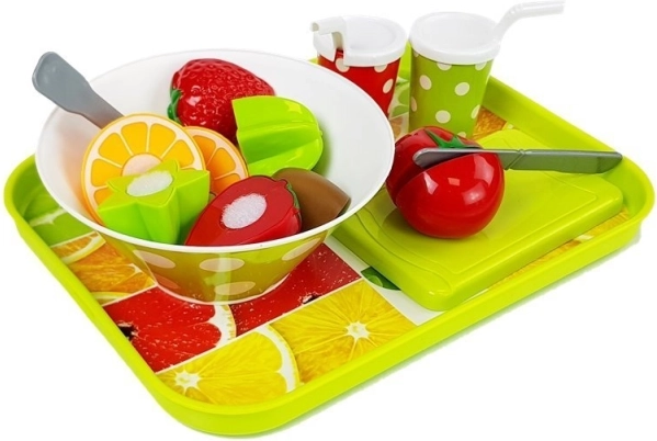 A készlet gazdag elemek palettáját tartalmazza, kezdve a sebességgombos mixerrel, különféle műanyag gyümölcsök és zöldségek, egészen a szívószálas poharakig és konyhai kiegészítőkig. Játék közben a gyerekek megismerkednek az olyan élelmiszerekkel, mint a sütőtök, kukorica, narancs vagy kivi.