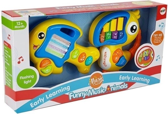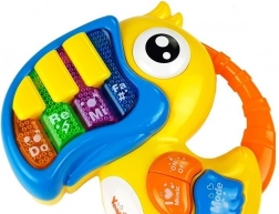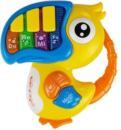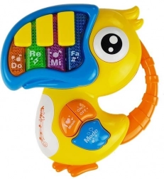 Zongorika és gitár papagáj és halacska alakban segítik a gyermekeket a minden érzék világa felfedezésében - látás, hallás és érintés. A színes funkcióknak és színes designnak köszönhetően a gyerekek új hangok, színek és formák felismerését tanulják meg.