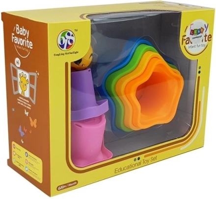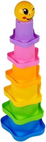 Minden csészének különböző színe és csillag alakja van. A játék nemcsak szép megjelenést biztosít, hanem elősegíti a motorikus és mozgáskészségek fejlődését, a fogás gyakorlását és a színek és formák felismerését. A csészék rakosgatása segít megérteni a különböző méretű tárgyak közötti viszonyokat.