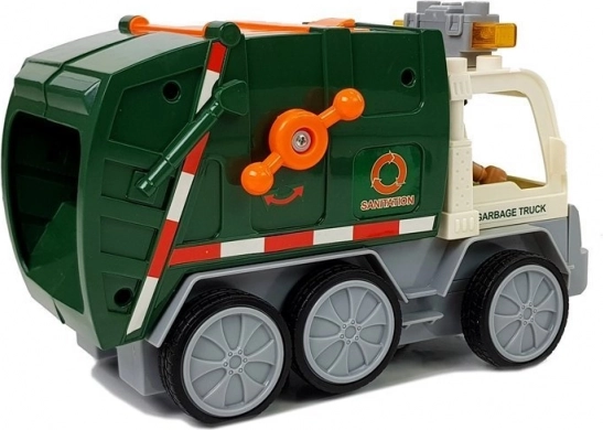 A kukásautó élethű részletekkel és praktikus, felül felnyitható fedéllel rendelkezik a „hulladék” bepakolásához, így a játék olyan, mint a való életben.