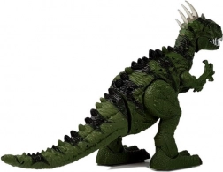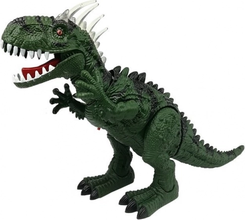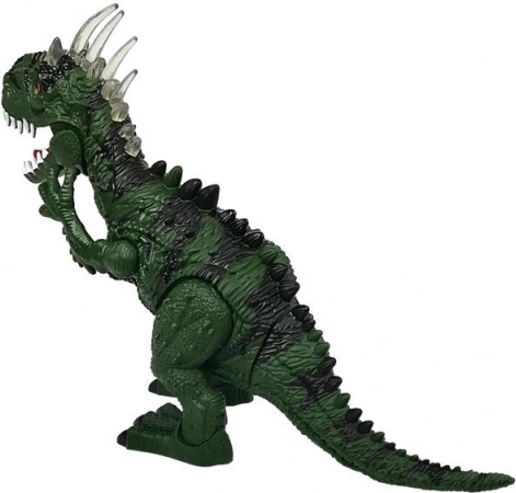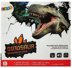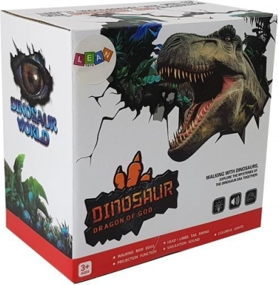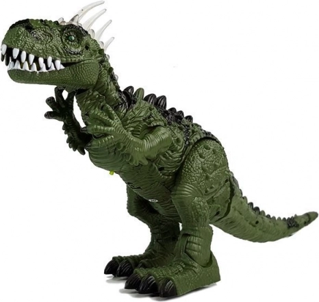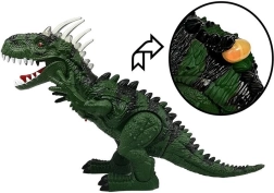 Az interaktív, elemes zöld dinoszaurusz a kis őskor‑rajongók kedvence lesz. Előre sétál, valósághű üvöltéshangokat ad ki, a fej „pikkelyeiben” fényhatások világítanak, tojásokat rak, és a mellkasában projektor vetíti egy valódi tyrannosaurus képét. Remek játék, amely fejleszti a képzelőerőt és órákon át szórakoztat.