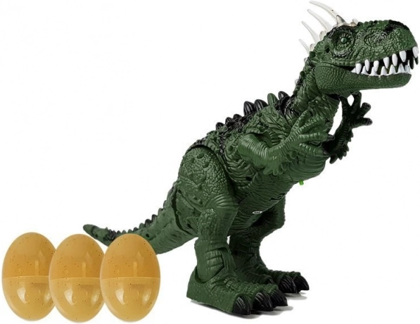 Egyedülálló attrakció a tojásrakás – a hátán lévő nyílásba helyezett tojásokat a dinoszaurusz menet közben lerakja. További wow élményt ad a mellkasba épített projektor, amely a valódi T‑rex képét vetíti, így a játékba egy kis edukációt és sok fantáziát csempész.