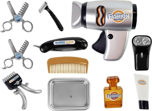 A színes, forgó dobbel ellátott hajszárító és a nyírási hangot adó gép valódi fodrász- és BARBER SHOP hangulatot teremt a játékhoz.