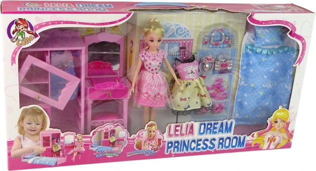 Ez a részletgazdag baba-hálószoba készlet bármely gyerekszobát rózsaszín királysággá varázsol. A gyerekek imádni fogják a kényelmes ágyat a puha takaróval és párnával, a tágas gardróbszekrényt a ruháknak és a fésülködőasztalt tükörrel a mindennapi szépség-rutinokhoz.