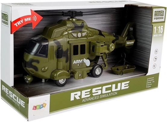 Fedezd fel a mentési és katonai küldetések világát a részletesen kidolgozott, 1:16 méretarányú helikopterrel. Az autentikus zöld-fekete álcázás ARMY felirattal, a forgó rotorok és a működő kerekek támogatják a valósághű játékot, míg az első és hátsó világítás, valamint a hanghatások egyenesen az akcióba repítik a gyerekeket.