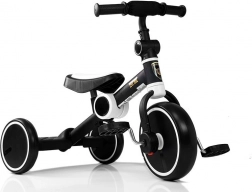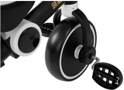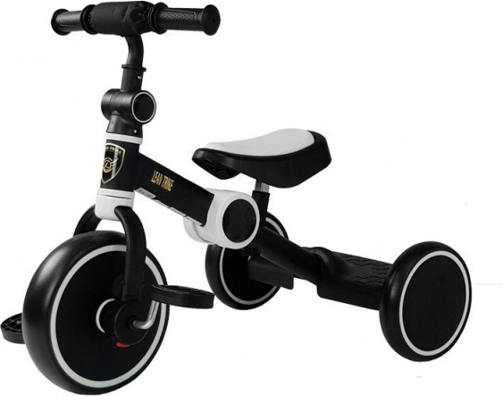 A fekete-fehér LAMBOR márkájú gyermek háromkerekű tökéletesen ötvözi a funkcionalitást és a dizájnt a kis kalandorok számára. A háromkerekű szerkezete magas stabilitást biztosít a három erős keréknek és a kényelmes ülésnek köszönhetően, amely két különböző magasságban állítható.