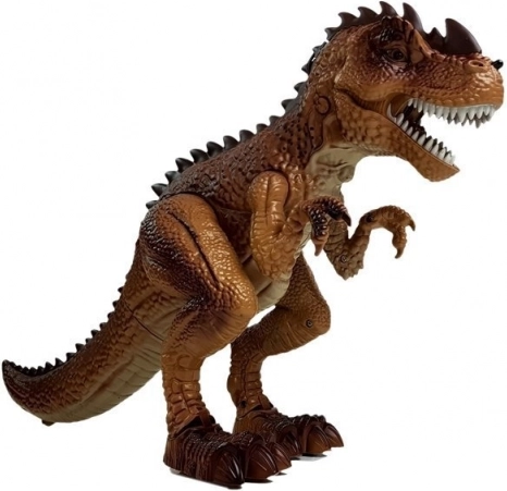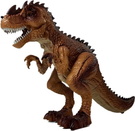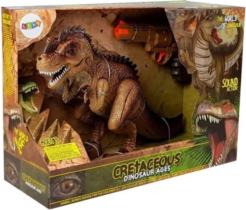 Az interaktív dinoszaurusz minden őskor- és akciótörténet-rajongónak örömet szerez. Bekapcsolás után magától előrefelé mozog, hallatszanak a lépései és a rémisztő üvöltés, a szemei pedig pirosan felgyulladnak. A pisztoly ravaszának meghúzásával indul a küzdelem – minden találat fény- és hangeffekteket indít; a kilencedik találatnál a T‑rex összeroskad, és lejátszik egy „vereség” effektet.