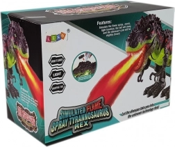 Elég egy kevés vizet tölteni a fején lévő nyílásba, és a T‑Rex gőzt fúj, amely a vörös LED‑fénnyel kombinálva „tűz”‑hatást kelt. A hátán tojástartó található – a behelyezés után a tojás alul jön ki, ami hűen utánozza a tojásrakást. A csomagban 3 tojás található az azonnali szórakozáshoz.