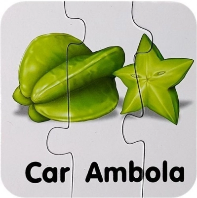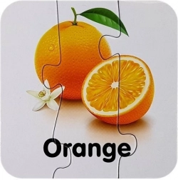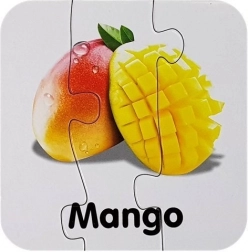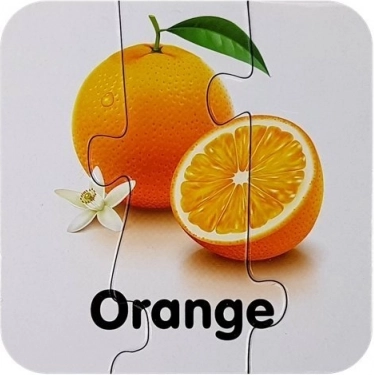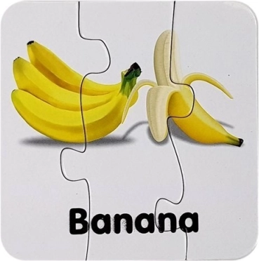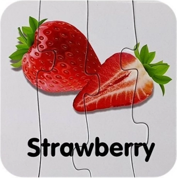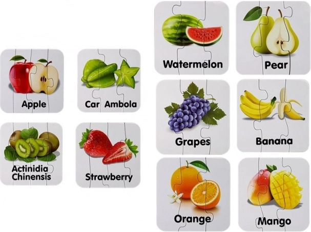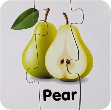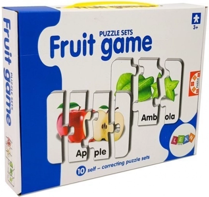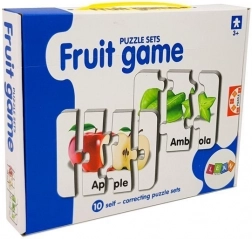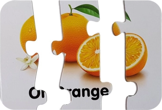 Minden kirakódarab egy gyümölcsöt és annak angol nevét ábrázolja (pl. Apple, Banana, Orange). A gyerekek a képek és a szöveg összekapcsolásának köszönhetően könnyen megjegyzik a szavakat.