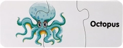 Minden darab egy aranyos tengeri élőlény képét köti össze az angol nevével. A gyerekek így könnyen megjegyzik az új szavakat és a jelentésüket.