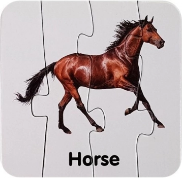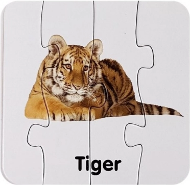 Okos módja annak, hogy a gyerekeket megismertessük az angollal és az állatvilággal. Minden puzzle-pár egy állatot és annak angol nevét ábrázolja (pl. Lion, Giraffe, Elephant), ami természetes módon bővíti a szókincset. Az önellenőrző rendszernek köszönhetően a gyerekek maguktól felismerik a helyes párosítást.