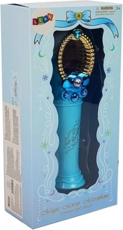Ez a bájos kék mikrofon díszes tükörrel végtelen szórakozást nyújt a gyerekeknek, és erősíti önbizalmukat a szereplés során. Bekapcsolás után a „varázs” tükörben megjelenik egy figura, a világító végek több színben ragyognak, és a gyermek igazi sztárnak érezheti magát.