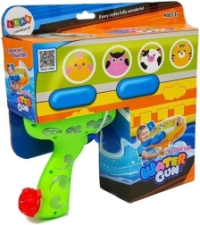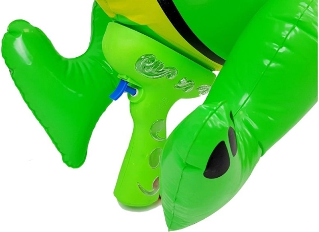 pumpát a ballon feltöltéséhez, a pisztolyba vizet öntenek, a ravasz meghúzásával vizet spriccel a dinoszaurusz szája.<\div>