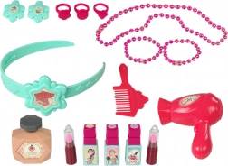 Tartalmaz változatos kozmetikai kiegészítőket: az öltözőasztal összeszereléséhez szükséges elemeket, matricákat, hajszárítót, fésűt, körömlakkot, gyűrűket, karkötőket, nyakláncot, hajcsatokat, parfümöt, rúzsokat és széket. Az öltözőasztal pasztell színekben pompázik, amelyek könnyen illeszkednek bármelyik gyerekszobába.
