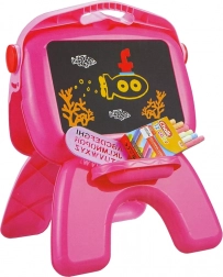 Fedezd fel a kreatív szórakozást ezzel a rózsaszín, kétoldalas rajztáblával projektorral. Kínál két rajzfelületet (fehér törölhető filcekhez és fekete krétához), kivetített képeket a könnyű átrajzoláshoz, valamint gazdag tartozékkészletet a hosszú alkotóórákhoz. Támogatja a gyerekek finommotorikáját, képzeletét és grafomotoros készségeit.