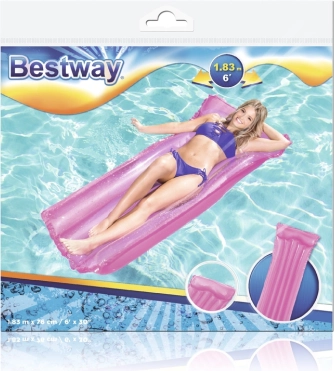 A Bestway felfújható nyugágy elegáns rózsaszín színben tökéletes a napozáshoz és a vízen való ringatózáshoz. A beépített párna kényelmes fejtartást ad, míg a bordázott felület stabil és komfortos fekvést nyújt.