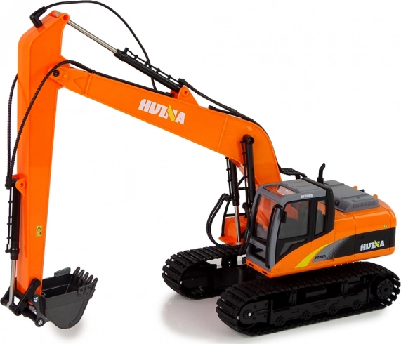 Építsd fel a saját építkezésed bárhol! Ez a részletgazdagon kidolgozott HUINA lánctalpas markoló hűen utánozza a valódi gépet: masszív műanyag felépítés, tartós alumínium kanál az anyag felkanalazásához és kiöntéséhez, valamint gumilánctalpak a stabil haladáshoz különféle felületeken. LED világítás és motorhangok nyújtanak még élethűbb játékélményt.