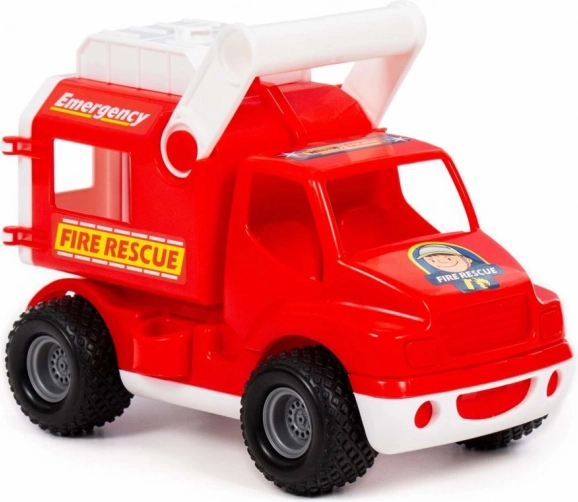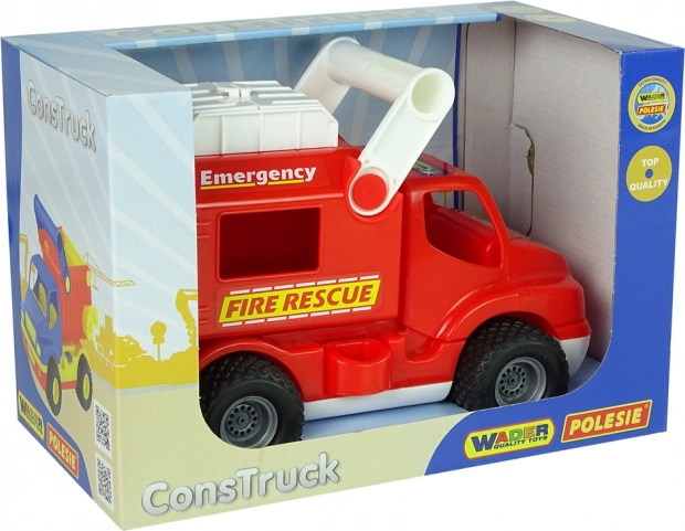 A POLESIE ConsTruck piros tűzoltóautó már 1 éves kortól örömet szerez minden kis mentőnek. A játék gumírozott, mintázott kerekekkel rendelkezik a jobb tapadásért, kihúzható létrával és nyitható rekeszekkel az apró kincseknek. Tartós műanyagból készült, és megfelel a CE tanúsítványnak – biztonságos, kreatív játékhoz ideális.