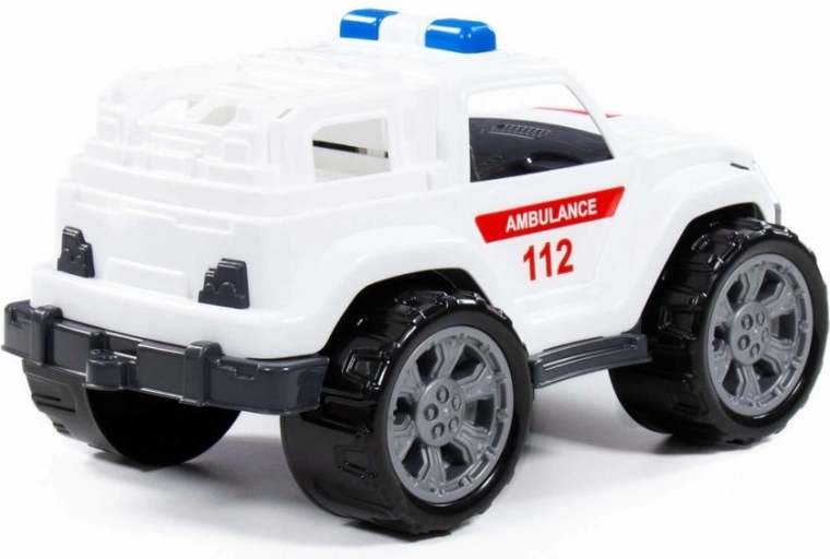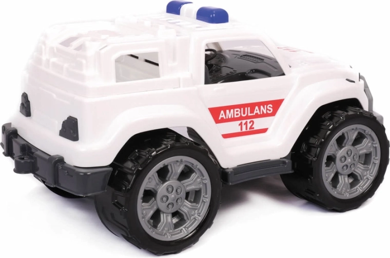 A jármű masszív terepdesignnal rendelkezik, a nagy kerekek messziről is feltűnnek, és az autó erejének benyomását keltik. Az oldalán piros „Ambulance” feliratú matricák találhatók, amelyek karaktert adnak a járműnek. Belül a vezetőfülke és a hátsó rész a legapróbb részletekig kidolgozott, és a valóságos megfelelőjét idézi. A játék szuper menőség minden kisautó-rajongónak, emellett a mentőszolgálati hivatás iránt érdeklődőknek is bővíti a járműgyűjteményét, és rengeteg szórakozást nyújt.