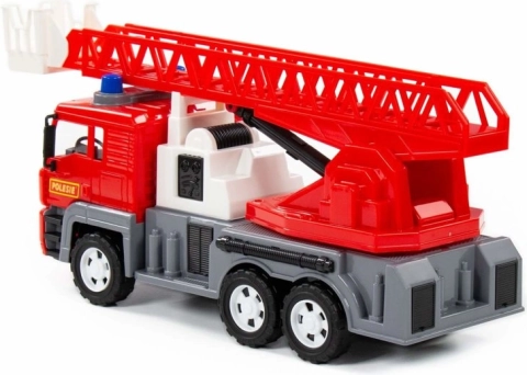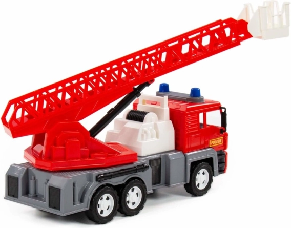 Nagy méretű műanyag Almaz tűzoltóautó kihúzható, forgatható létrával, akár 70 cm hosszúságban, amely valósághű, akciódús szórakozást nyújt a gyerekeknek. A strapabíró kialakítás, a részletgazdag kidolgozás és a könnyű kezelhetőség támogatja a kis tűzoltók kreatív játékát otthon és a szabadban is.